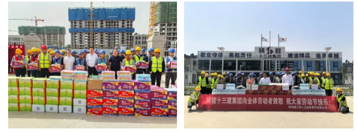 “五一”期間,集團深入大荔同州府邸住宅區、邯鄲匯寶康城一期(D,E)區等重點建設項目慰問節日期間堅守崗位的一線員工,向奮戰在項目一線的全體勞動者致以節日的問候和崇高的敬意,為他們送去綠豆、冰糖、藿香正氣水、飲料、方便面等慰問品。